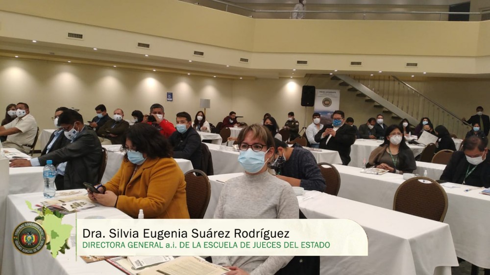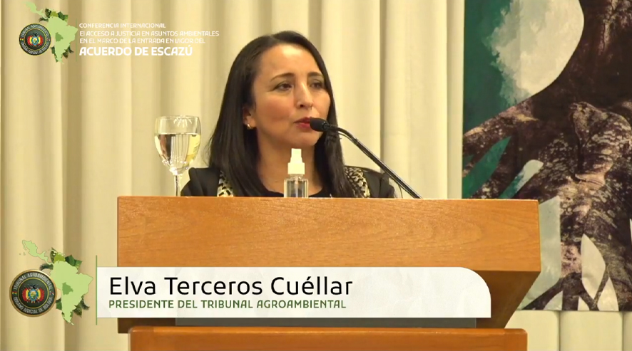 La Escuela de Jueces del Estado (EJE), con la representación de la Dra. Silvia Eugenia Suárez Rodríguez, Directora General a.i., participó de las conclusiones y cierre de la Conferencia Internacional denominada “El acceso a Justicia de Asuntos Ambientales en el marco de la entrada en vigor del Acuerdo de Escazú”, realizado el 22 de abril en la ciudad de La Paz.